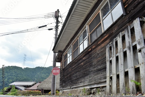 日本の田舎、原風景、夏、美山、かやぶき、美山かやぶきの里、石垣、古民家、しっくい、日本家屋、歴史的建造物、木造建築