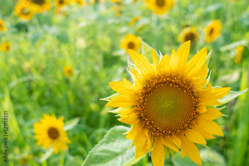 真夏の太陽に向かい元気よく咲く向日葵たち