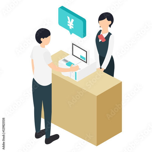 illustration, vector, sweet, isometric, vector, people, business, person, people, businessman, occupation, man, woman, white background, cash desk, finance, man, woman, customer service, gold, money, barcode, credit card, counter, shopping, shopping, store, shop, department store, plural