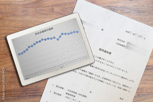 完全失業率の推移グラフと採用通知書