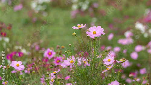 flower, nature, field, meadow, grass, plant, yellow, white, pink, beauty, cosmos