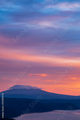 morning, sunset, sunrise, lake, sky, landscape, mountain, nature, cloud, morning, orange, red, sunlight, hill, evening, view, lovely, fog, pigmentation, gradation, background, soft, majestic, liquid