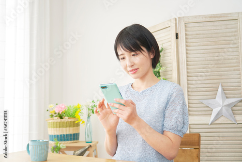 woman, smartphone, look, spend, house, home, young, 30s, smile, japanese, smartphone, mail, possess, cyberspace, search, net, game, app, smile, living room, homemaker, room, indoor, lifestyle, indoor, relax, loosen up, asian, summer, online