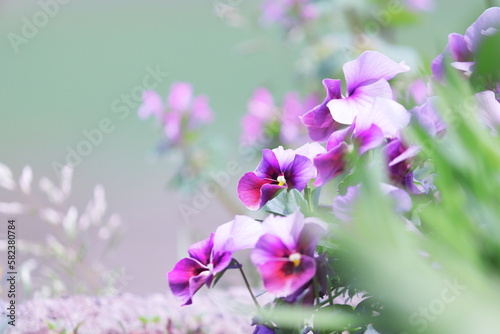 flower, viola, plant, pansy, flower petals, purple, nature, purple, full bloom, spring, up, open air, lovely, closeup, sweet, pretty, flowerbed, landscape, yellow, flower garden, flower, colourful, gardening, clean, summer, green, leaf, background, green, copy space, pretty, wildflower, material, wallpaper, sunny, bokeh, light, healing, pure, vivid, fresh, sparkling