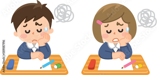 classroom, study, school, exam, children, children, table, learning, children, boy, girl, boy, girl, toddler, student, student, training, school, learn, uniform, poorly, malfunction, marode, people, japanese, sweet, illustration, illustration, illustration, material, white background, vector, vector, cartoon