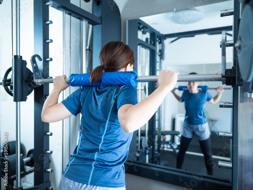 training, fitness, gym, people, exercise, woman, japanese, exercise, diet, train, young, working out, muscle, indoor, sports club, health, sport, 30s, lifestyle, back, barbell, portrait, trainer, squat, dupe, weight, shoulder, knee, machine, weight loss, sweet, asian, pursuit, instructor, cosmetic