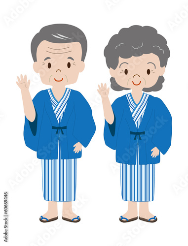 hot spring, yukata, couple, aged, aged, baby boomer, travel, bathe, smile, illustration, relax, hotel, journey, japan, couple