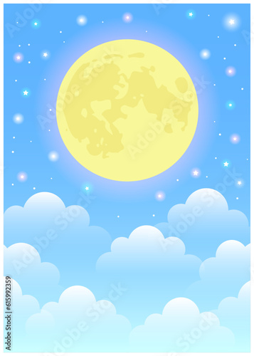 青いメルヘンゆめかわ世界に浮かぶ満月タテ