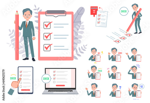 checkbox, check, binder, checklist, president, executive, businessman, man, business, suit, aged, people, 60's, japanese, employee, occupation, smartphone, personal computer, questionnaire, posting, post, choice, check, version, record, entry, submission, clipboard, document, affirmation, contract, pen, lead pencil, evil, lie, consultation, refer, vector, set, illustration