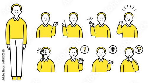 man, expression, variation, sweet, uncle, grandfather, grandfather, business, businessman, people, person, middle-aged, aged, manager, manager, boss, 50's, 60's, waist up, pose, magnifying glass, refer, ok, embarrassment, surprise, problem, white-collar worker, employee, illustration, vector, man, set, aged