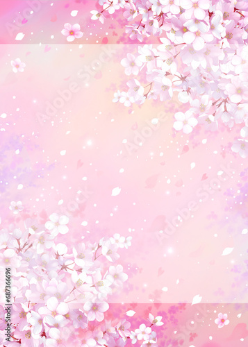 桜の背景素材 枠 桜吹雪 和風 お花見 入学 卒業 入園 卒園 入社 ひな祭り 雛祭り 縦長