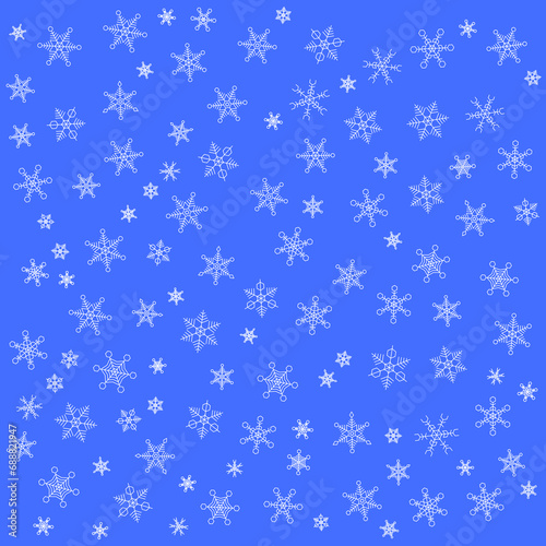 空に舞う雪の結晶、青背景、背景素材