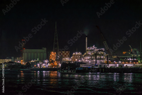 factory, nightscape, night, city, water, stream, horizon, architecture, light, bridge, city landscape, travel, panorama, building, urban, landscape, sea, tower, sky, waterfront, town