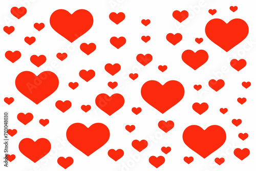 白い背景に大小たくさんのバレンタインの赤いハートのオブジェ