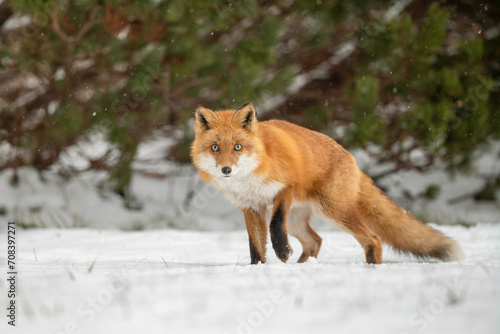 雪の日のキタキツネ