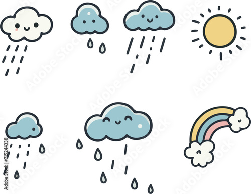 cloud, sun, rainbow, rain, weather, weather, illustration, cartoon, pretty