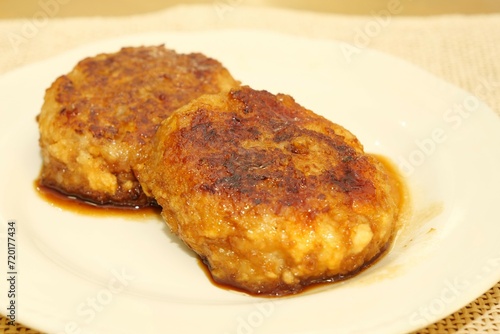 摺り下ろした蓮根とハンペンの照り焼き、ハンバーグ風