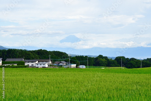 北杜市の田園風景と富士山(山梨県)