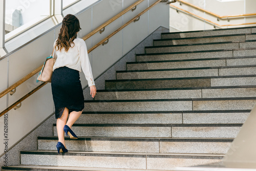 通勤・出勤・出社・転勤・出張で駅の階段を歩くビジネスウーマン(徒歩)
