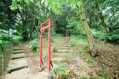 shrine, japan, april, spring, daytime, outside, morning, open air, religion, torii, red, nature, landscape, travel, copy space, mountain, holiday, vacation