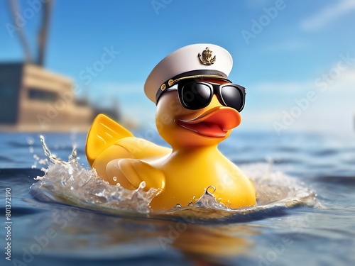 ラバーダックの遊泳。船長制帽とサングラスで航海は順調