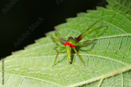 タカラダニたくさん寄生するワカバグモ(自然光+ストロボ、マクロ接写撮影)