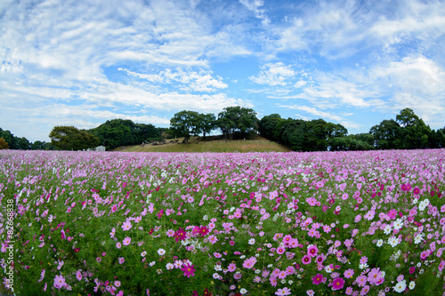cosmos, flower garden, flower, sky, blue skies, plant, sun, fall, season, nature, macro, macro, closeup, flower petals, red, pink, white, purple, pretty, sweet, lovely, nagasaki
