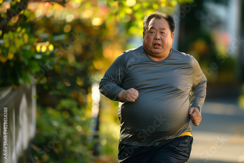 running, fat, obesity, jog, diet, fat, middle-aged, man, training, weight, weight loss, diabetes, high-blood-pressure, stroke, fitness, fat, brazen, pathos, japanese, chinese, korean, asian, lose weight, alone, check-up, inspection, stomach, waist, sport, exercise, calorie, fasting, fast
