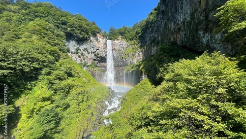 waterfall, water, nature, stream, landscape, rock, forest, park, fall, mountain, travel, national park, light, rainbow