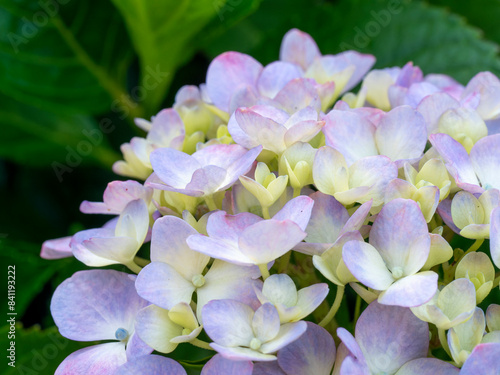 magenta, hydrangea, flower, summer, rainy season, verdure, green, plant, leaf, unmanned, japan, park