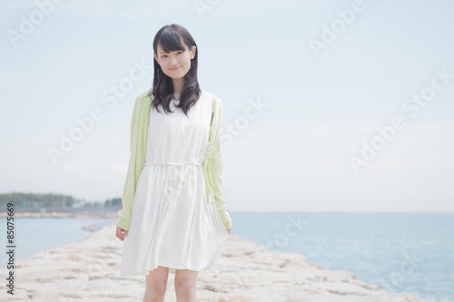 woman, summer, sea, people, girl, young, beach, beach, beach, blue skies, sunny, resort, vacation, vacation, summer getaway, vacation, refresh, horizon, ultraviolet, black hair, open air, ol, light, pretty, refreshing, sweet, portrait, japanese, asian, travel, casual, lively, smile, fun, copy space, waist up