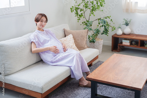 pregnancy, mother-to-be, woman, maternity, middle-aged, summer, smile, japanese, asian, 30s, mother, mother, mother, stomach, stomach, pat, touch, matrix, house, home, room, couch, couch, relax, relax, happy, happiness, love, joyful, enjoyment, lifestyle, people