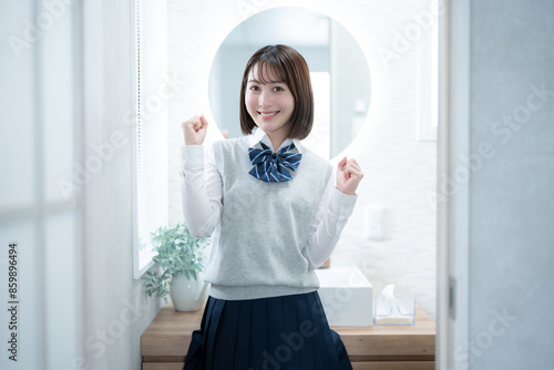 beauty, mirror, confidence, woman, people, washbasin, look, puberty, japanese, children, girl, woman, student, home, copy space, waist up, face, skincare, cosmetic, bathroom, home, look, shape, appearance, yourself, lifestyle, indoor, comfort station, cheek, touch, diet, complex, trouble
