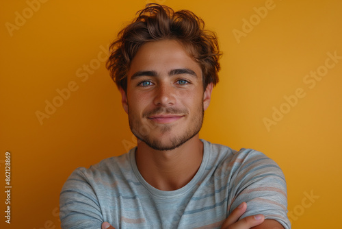 man, smile, portrait, 1, adult, student, gesture, beard, good-looking, strong, pose, fashion, cool, waist up, face, t-shirt, crop, dependable, young, adult, expression, health, cleanliness, confidence, smile, studio, up, copy space, people
