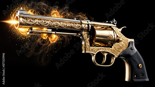 revolver, gun, arm, revolver, firearm, police, metallic, dangerous, barrel, black, military, army, trigger, flames, explosion