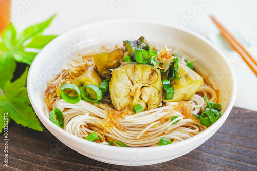 somen, summer, aubergine, aubergine, aubergine, ginger, vinegar, arrangement, noodle, cold, dish, vegetable, vegetable, delicious, meal, simple, dinner, lunch, chopstick, japan, photo