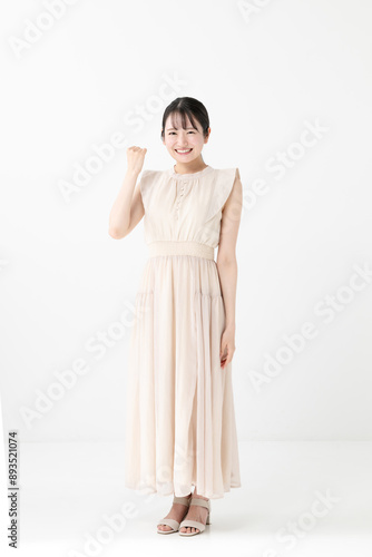 high heel, white background, cosmetic, casual, pretty, woman, beauty, hustle, hustle, guts, pose, portrait, clean, smile, smile, young, japanese, 30s, people, girl, byte, sideline, success, fight, cheer, joyful, dress, lovely, beauty, sweet, heel, stand, refreshing, middle-aged, her