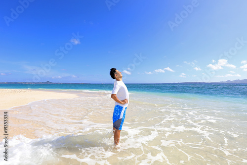 beach, wave, water, sea, japan, japanese, man, man, summer, journey, travel, okinawa, okinawa, tour tourism, tourist attraction, resort, resort, healing, health, cosmetic, stretching, exercise, fitness, diet, nature, landscape, view, sky, happiness, happy, model, people, smile, healthful, good-looking, face, hair, light, clean, adult, adult, enjoyment, smile, person, summer getaway, relaxation, vacation