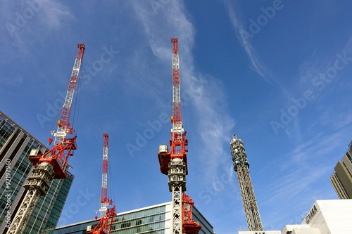 crane, grow, bubble, lush, construction site, construction, site, building, building, blue skies, sunny, house, highrise, sky, mechanism, improve