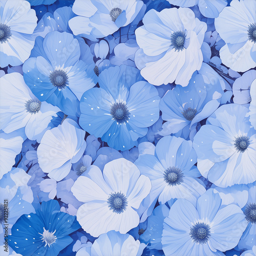 poppy, flower, pattern, seamless, aerial, miniature, blue, floral, textured, background, wallpaper, design, art, decoration, flower petals, stamen, drop, daintiness, macro, detail, texture, density