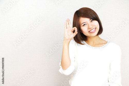 woman, people, ok, ok, pose, ok, smile, smile, brown-haired, bob, japanese, sweet, clean, girl, refreshing, light, casual, lifestyle, expression, young, cyberspace, waist up, white background, copy space, indoor, indoor, joyful, smile, success, student, roger, asian, chinese, korean, taiwanese