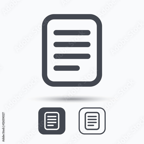 File icon. Text document page symbol. Square buttons with flat web icon on white background. Vector