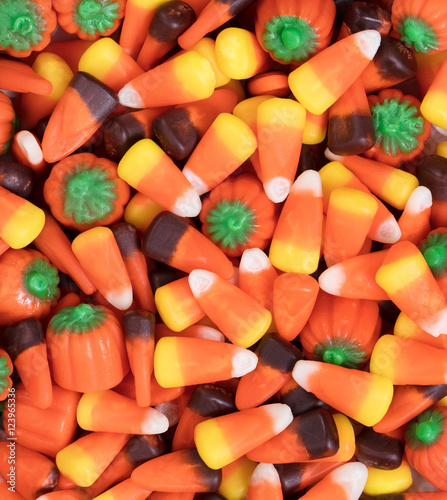 Filled frame of autumn holiday candy corn and pumpkin shapes