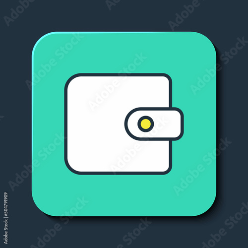 Filled outline Wallet icon isolated on blue background. Purse icon. Cash savings symbol. Turquoise square button. Vector