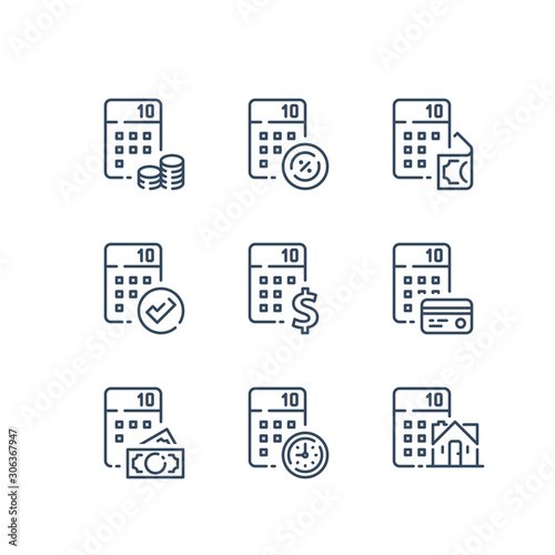 icon, line, calculating machine, calculation, count, money, finance, tax, return, business, pay, fee, commission, check, dollar, card, credit, loan, fast, mortgage, house, estate, rental, buy, sell, cost, expense, profit, refund, refinance, debt, clock, time, property, coin, interest, capital, earn, currency, exchange, revenue, accounting, banking, balance, savings, plan, budget, home, percentage, income