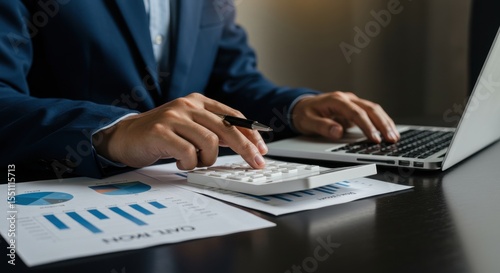 laptop, chart, calculating machine, business, office, spreadsheet, accounting, investment, finance, economy, market, planning, strategy, corporate, professional, suit, businessman, workplace, desk, number, statistic, graph, document, report, calculating, auditing, paperwork, closeup, hand, typing, pen, modern, technology, analysis, growth, success, efficiency, precision, diligence, focused, serious, job