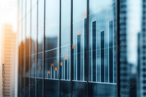 Financial growth charts reflected in glass office building windows, Dynamic financial growth, Corporate financial success