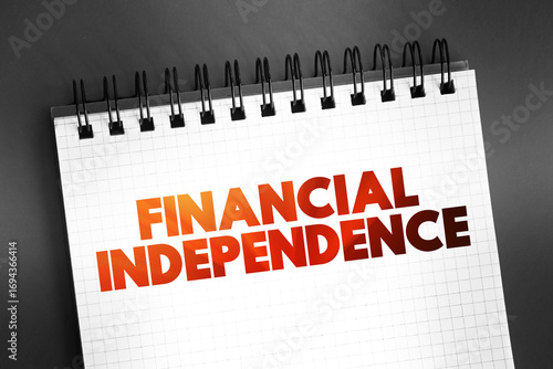 Financial independence - status of having enough income or wealth sufficient to pay one's living expenses for the rest of one's life, text on notepad, concept background