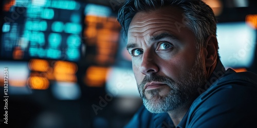 finance, stock exchange, trader, investor, monitoring, technology, business, investment, trading, analysis, night, dark, serious, focused, concentration, expertise, professional, occupation, career, responsibility, pressure, strategy, planning, information, digital, innovation