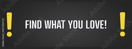 Find what you Love. A blackboard with white text. Illustration with grunge text style.